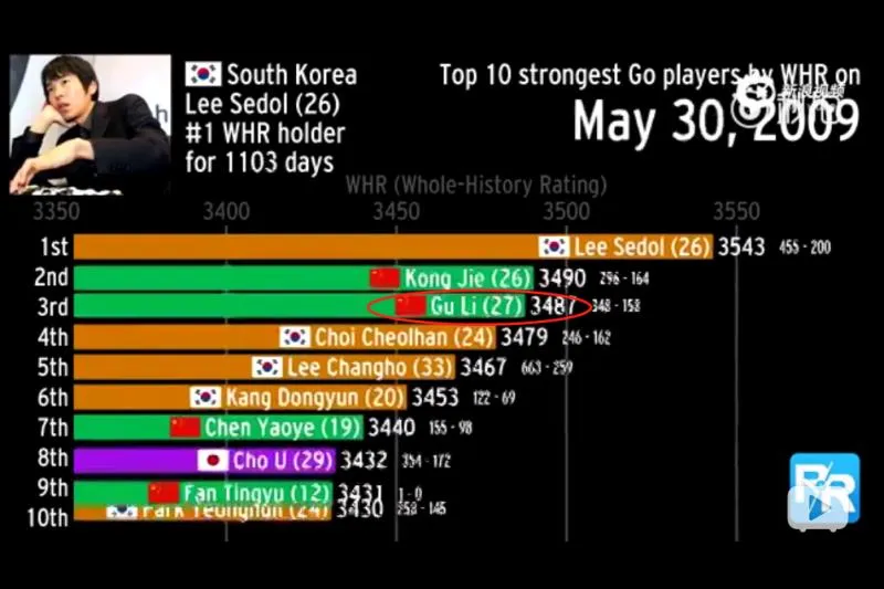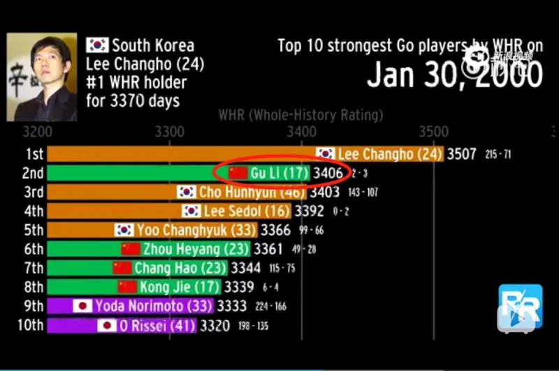 那个视频做得精致且热血,观感极佳,但可惜因为种种原因,其中的内容和现实有些许出入。当时其中最令我在意的错漏,就是这个排名方法对中国棋手古力严重低估了。