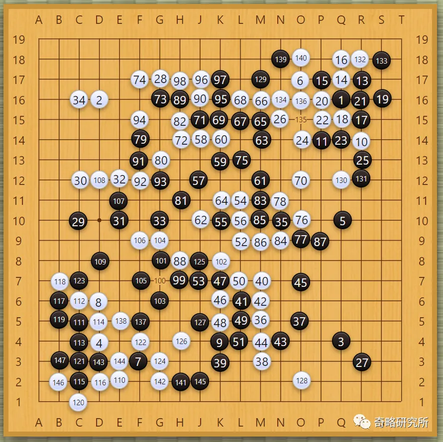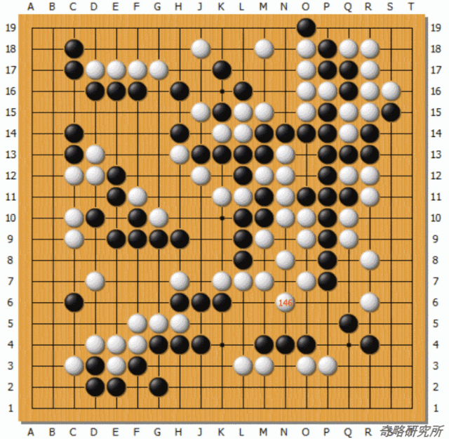 局势不利之下,曹薰铉宁置大龙于险境,也要争抢实地。芮迺伟则顺势猛攻白棋中央大龙。至155手,黑棋已将白棋冲击得七零八落,曹薰铉只能认输。